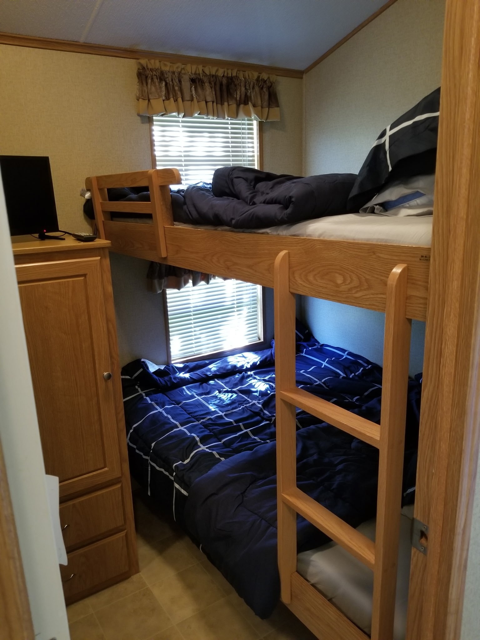 2 bedrooms, rear king master and slide bunk room, 11 x 32 H & H awning(2022).