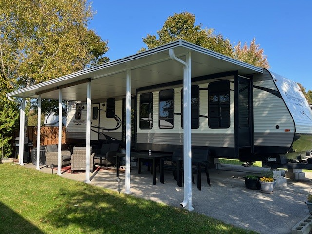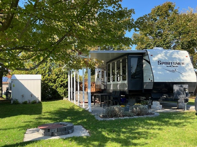 Includes: TV, kettle,dishes, cutlery, patio furniture, H & H awning , extra steps, stick vacuum, H & H winter pole supports, new residential fridge (2024), 2 car gravel laneway.