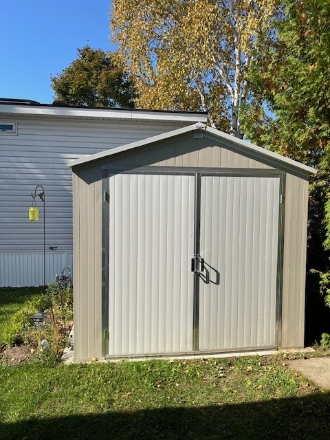 Includes: Stairs, privacy fence, gazebo, patio table, chairs, shed, propane fire pit, BBQ, lawnmower, trimmer, blower, wood rack, 4 chairs, Blue Ox hitch (towed under 1000kms).