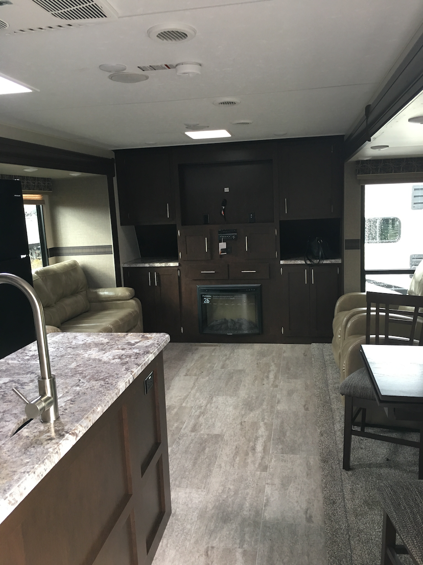 2016 Grand Design Reflection 34 x 8 on a great lot. One bedroom, queen master at front, pull out couch and 2 recliners, A/C & electric fireplace.